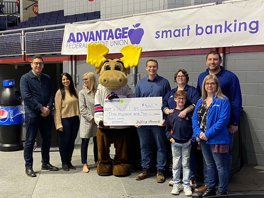 AFCU recently attended an Amerks hockey game and donated $3,000 to Villa Of Hope, The Rochester Americans charity of choice, as part of our Debit Card Giveback program. For more than 70 years, Villa of Hope has been helping youth and their families regain control over lives that seem lost. Donations support financial literacy education programs. Since 2016, we have given back $15,000 to Villa of Hope.