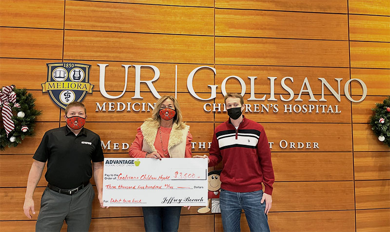 Last week, AFCU donated $3,500 to the Golisano Children’s Hospital based on our Debit Card Giveback program.  Your support will save lives, comfort families, and bring a smile to a child’s face. Since 2013 we have given back over $28,500.
