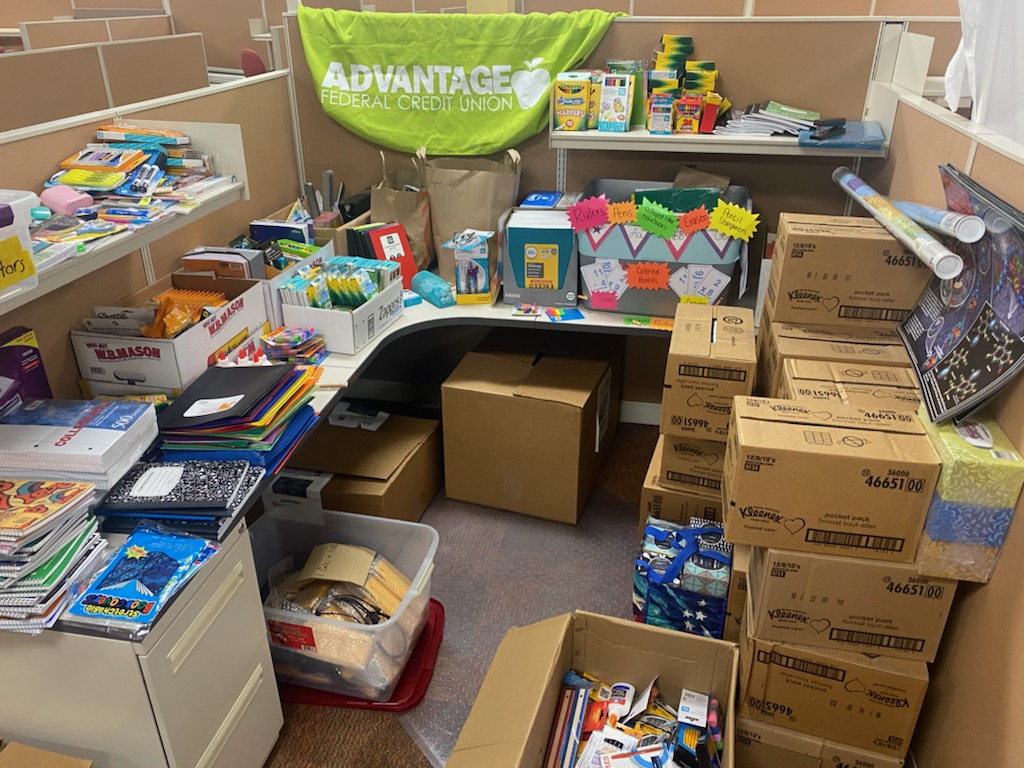 Students and new teachers in the Rochester City School District received a special back-to-school donation from Advantage Federal Credit Union! Now in its 8th year, the summer campaign was supported by credit union staff and generous members who collected hundreds of new school supplies including calculators, backpacks, paper supplies, science goggles and much more. The donations were delivered to a number of elementary, middle and high schools within Rochester City School District.