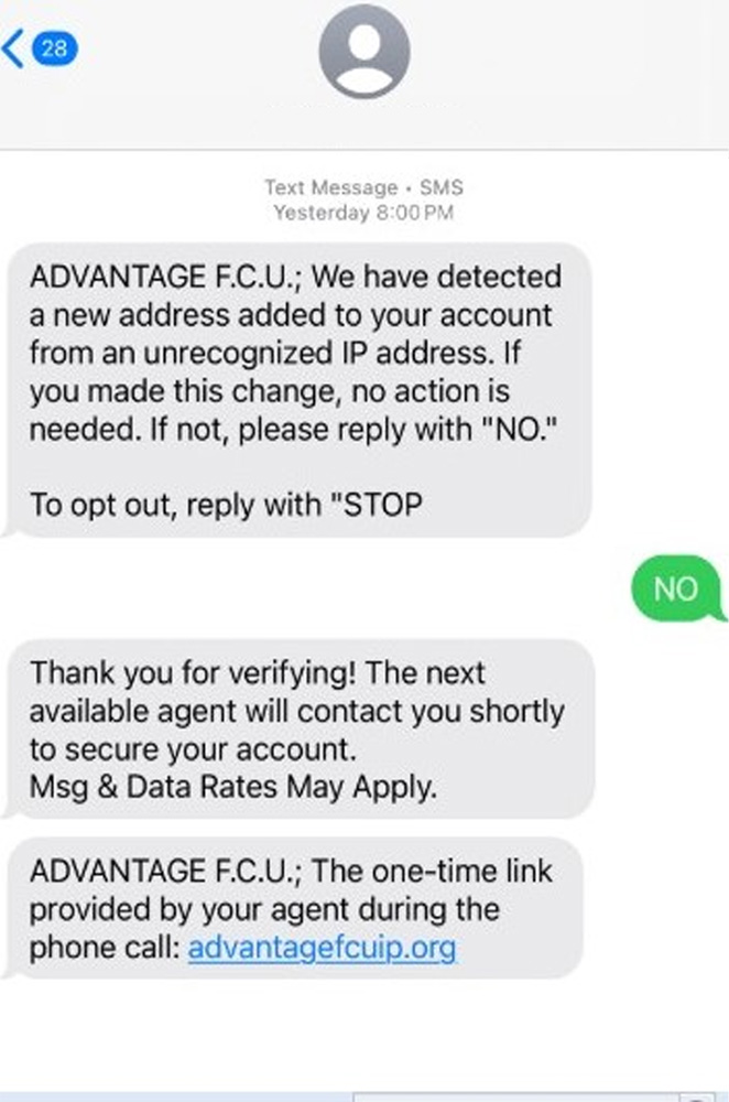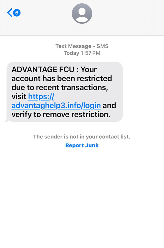 Advantage FCU will never contact you outside of business hours and we will never ask for your personal information, online banking credentials, or PIN numbers. If you are getting calls, please hang up and call us directly at 585.454.5900 option 5.