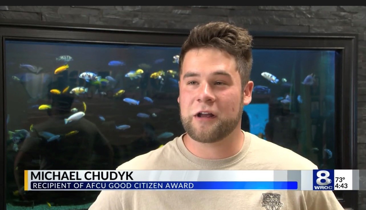 Honored to present the first Advantage Good Citizen Award to AFCU member MICHAEL CHUDYK for his heroic efforts in a river rescue. Michael and his family are AFCU members at URMC Med Center branch and joined us for an award presentation at Metro, along with multiple media outlets. An emotional moment.